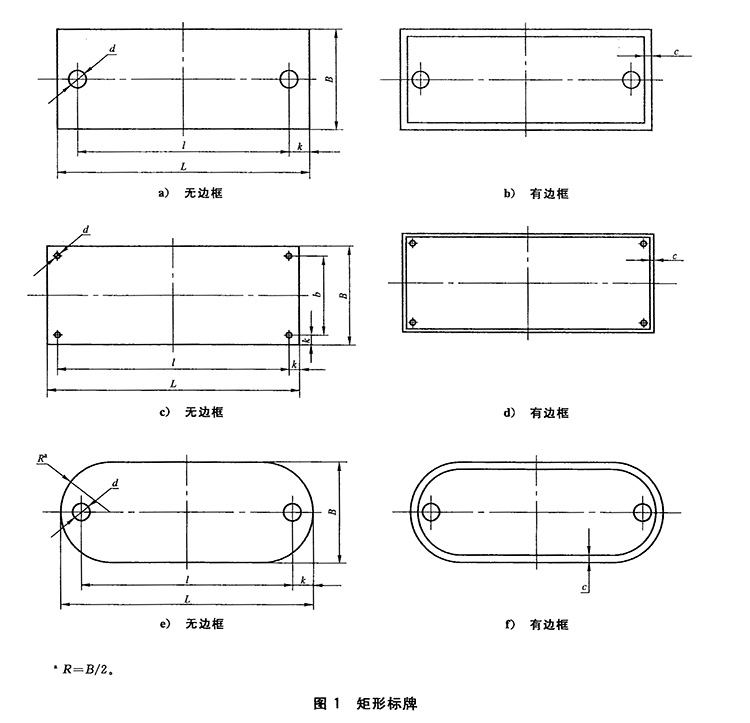 3.3.1 矩形标牌的型式与尺寸应符合图1和表1的规定。两孔的矩形标牌,两端允许制成圆头,其型式见图1e)和图1f)。
