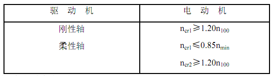 3.2.10 鼓风机的主轴可为刚性轴或柔性轴。主轴的一阶临界转速 ncr1、二阶临界转速 ncr2 与 100%转速 n100、最低持续工作转速 nmin之间的关系应符合表 1 的规定。