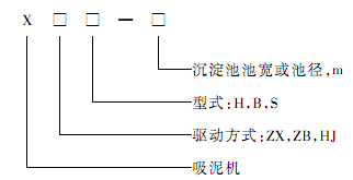 4.1.1 吸泥机按排泥方式分为虹吸式 (H)、泵吸式 (B)和水位差式 (S)。