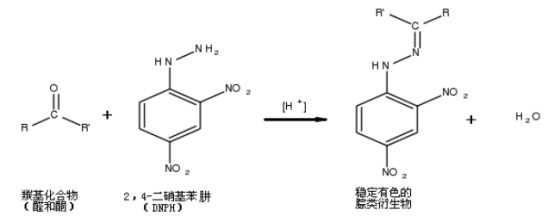固定污染源有组织排放废气中的醛、酮类化合物在酸性介质中与吸收液中的2,4-二硝基苯肼(DNPH)反应,生成稳定的 2,4-二硝基苯腙类衍生物,用二氯甲烷萃取、浓缩后,经高效液相色谱分离,紫外或二极管阵列检测器检测。根据保留时间定性,外标法定量。