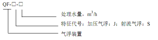 压力溶气气浮装置的命名和型号用汉语拼音字母和阿拉伯数字表示。