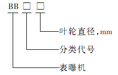 示例:BBD 2250,指叶轮直径为2 250 mm的倒伞型表曝机。