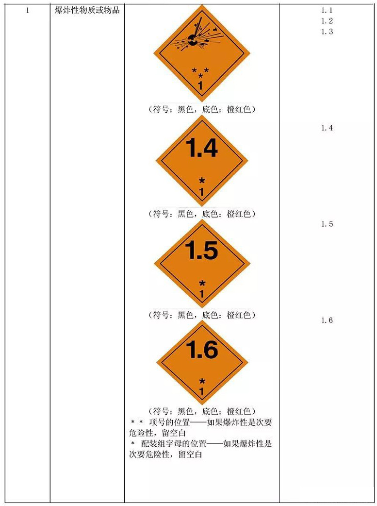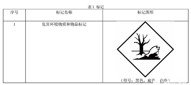 标志分为标记(见表1)和标签(见表2)。标记4个;标签26个,其图形分别标示了9类危险货物的主要特性。