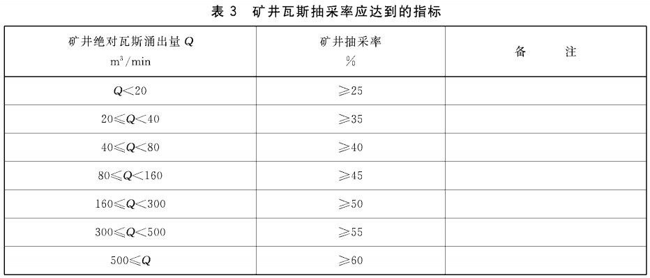 4.4矿井瓦斯抽采率应满足表3规定。
