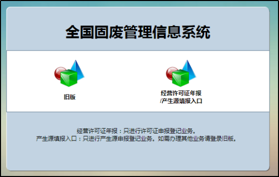 选择旧版(出口业务)或者新版(经营许可证年报/产生源填报入口)均可,跳转到登陆页面,如下图所示。