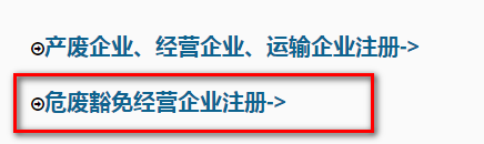 选择危废豁免经营企业注册。