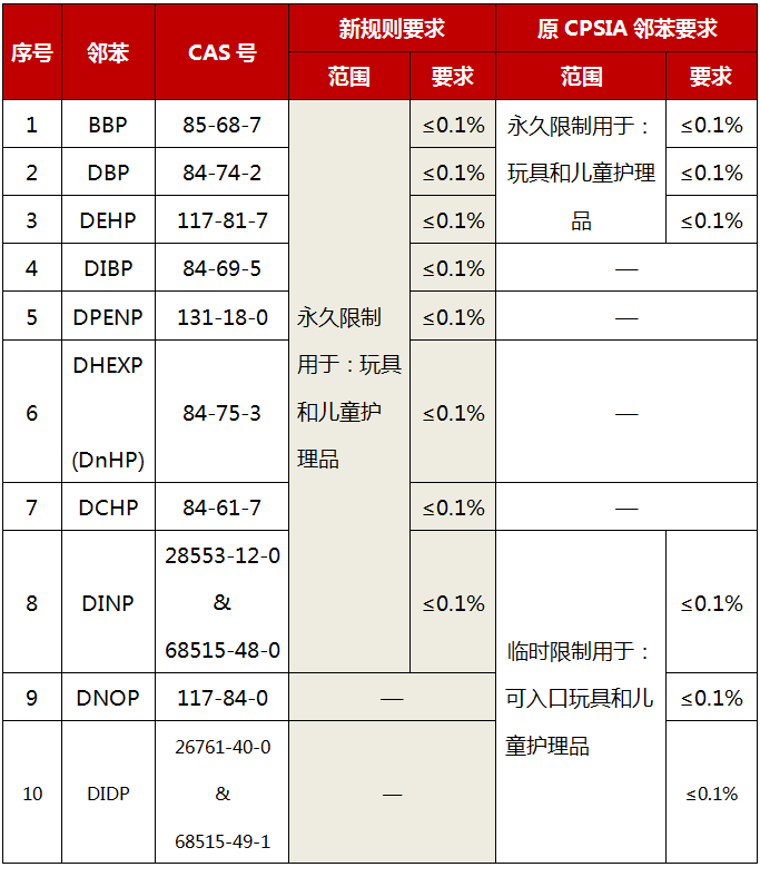 ②2017年10月18日正式确定调整邻苯二甲酸酯要求,新规则将于联邦公报刊登180天后生效.