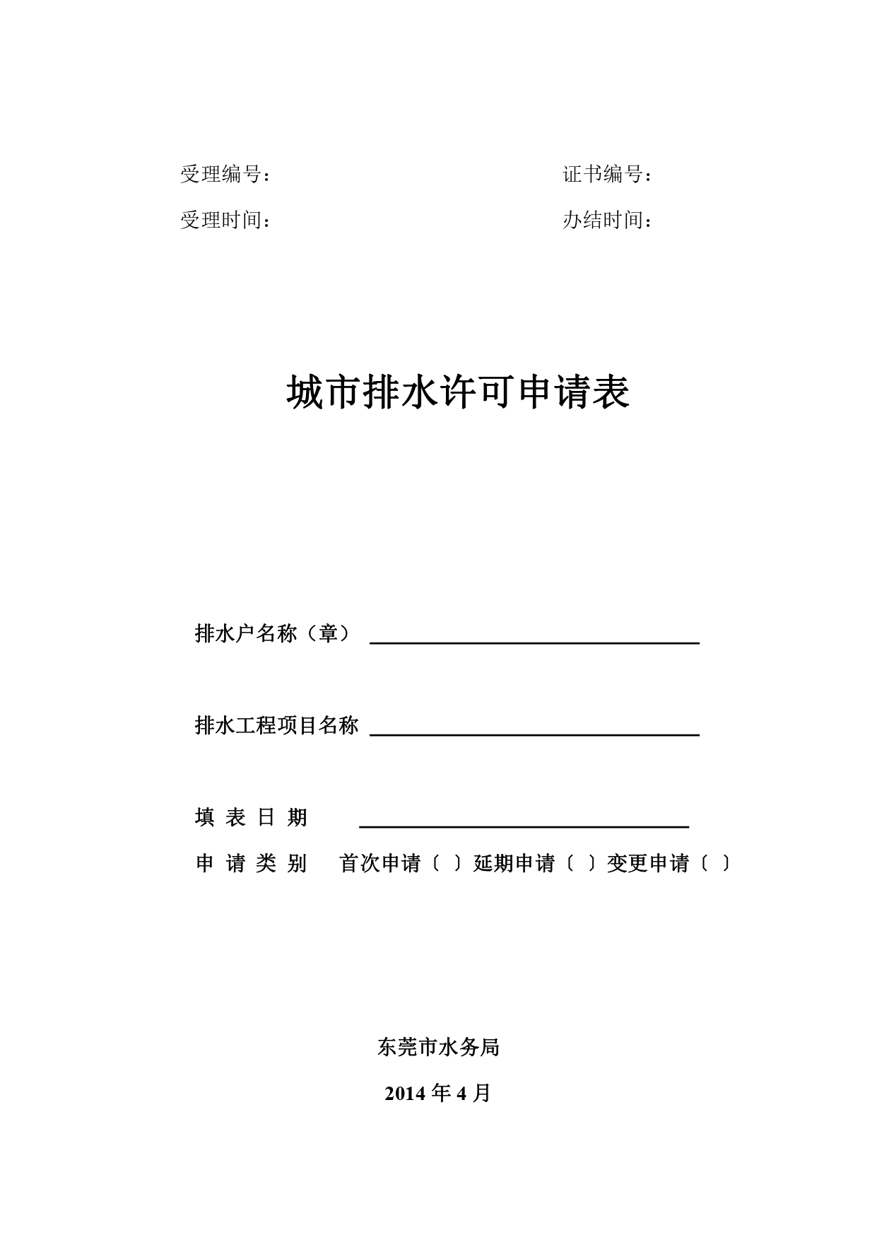 东莞市排水许可申请表(非临时施工类)