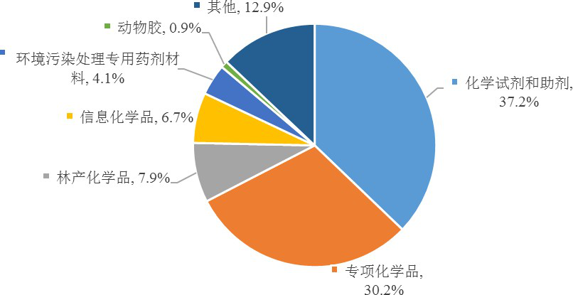 专用化学产品制造工业包括化学试剂和助剂制造,专项化学用品制造(水处理化学品、造纸化学品、皮革化学品、油脂化学品、油田化学品、生物工程化学品、日化产品专用化学产品等),林产化学产品制造,文化用信息化学品制造,医学生产用信息化学品制造,环境污染处理专用药剂材料制造,动物胶制造,其他专用化学产品制造等。
