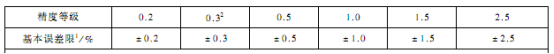 4.1.3 流量计的精确度等级和基本误差限应符合表1的规定。