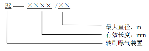 示例:BZ-9000/1.0 指水平轴有效长度为 9000mm,最大直径为 1.0m 的转刷曝气装置。