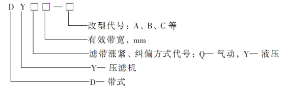 带式压榨过滤机的命名和型号用汉语拼音字母和阿拉伯数字表示。
