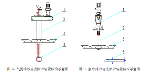 1.传动机构;2.搅拌轴;3.叶轮;4.吸砂组件;5 排砂管至砂泵