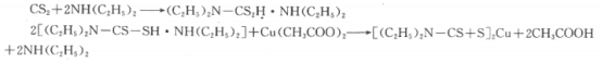 在铜盐的存在下,二硫化碳与二乙胺作用,生成黄棕色的二乙氨基共硫代甲酸铜,在430nm波长处分光光度计测定,反应式如下: