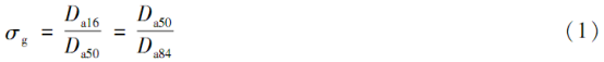 采样器对颗粒物的捕集效率为16%时对应的粒子空气动力学当量直径Da16与采样器的切割粒径 Da50的比值,同时也是采样器的切割粒径Da50。与采样器捕集效率为84%时对应的粒子空气动力学当量直径Da84的比值。即(1)式: