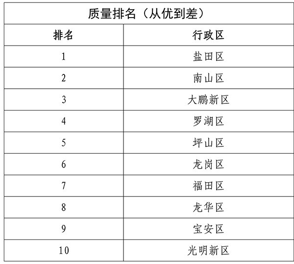根据深圳市水污染防治目标责任书地表水水环境质量考核断面水质监测结果,2018年第二季度,盐田区、南山区、大鹏新区、罗湖区河流水质总体良好,达地表水Ⅴ类及以上,位列前四。