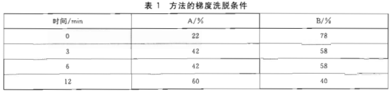 5.2.1.2 流动相:A:甲醇与乙睛的混合溶液(1+3,V/V) ,B:0. 01 mol/L的草酸溶液(3. 7),梯度洗脱条件见表1。