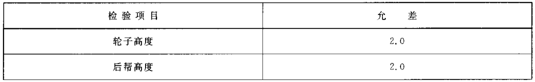 同双轮滑鞋对称部位尺寸允差应符合表1的规定。
