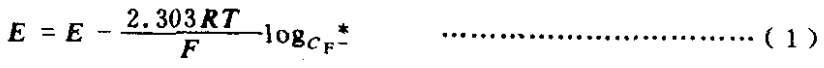 当氟电极与含氟的试液接触时,电池的电动势E随溶液中氟离子活度变化而改变(遵守Nernst方程)。当溶液的总离子强度为定值且足够时服从关系式(1)