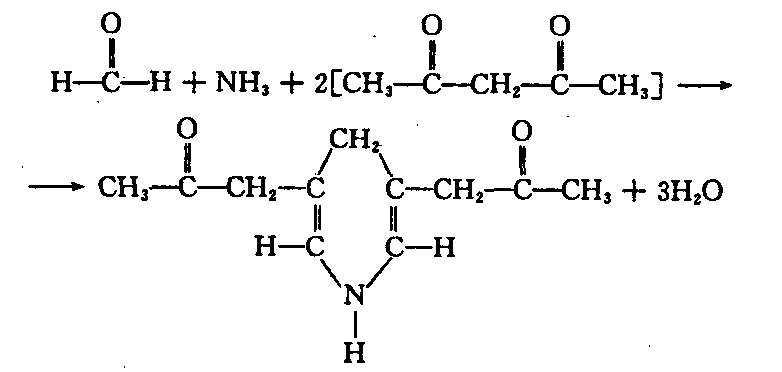 甲醛气体经水吸收后,在pH=6的乙酸-乙酸铵缓冲溶液中,与乙酰丙酮作用,在沸水浴条件下,迅速生成稳定的黄色化合物,在波长413 nm处测定,反应式如下: