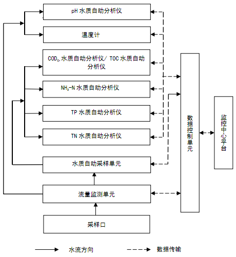 图1 水污染源在线监测系统组成示意图