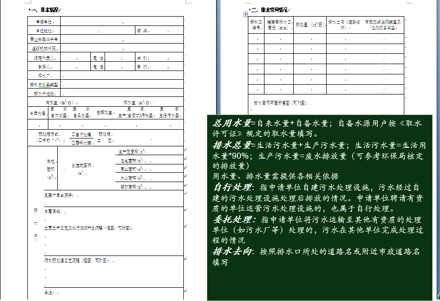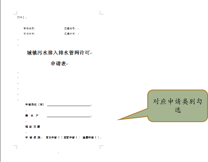 1、《城镇污水排入排水管网许可申请表(变更/延续) 》;