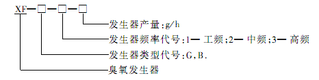 臭氧发生器的型号由汉语拼音字母、英文字母和阿拉伯数字按规则排列组成。