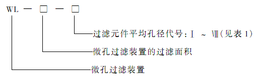 示例:WL-100-Ⅰ 指过滤面积为100 m2、平均孔径为80 ~ 140 m的微孔过滤器。