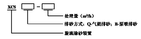 示例:XCSQ-1080 表示处理量为 1080m3/h 的气提排砂旋流除砂装置。