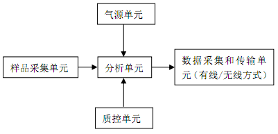 监测系统由样品采集单元、质控单元、气源单元、分析单元、数据采集和传输单元以及其他辅助设备等组成,如图 1 所示。