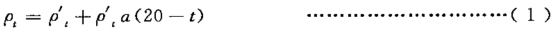 常温t(℃)下试样的密度以只计,数值以克每立方厘米(g/cm3)表示,按式(1)计算: