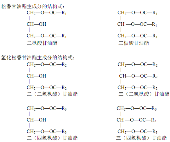 以普通氢化松香(主要成分为二氢极酸)或高度氢化松香(主要成分为四氢极酸和二氢极酸)为原料,与甘油酯化反应,经水蒸气吹蒸处理而制得。