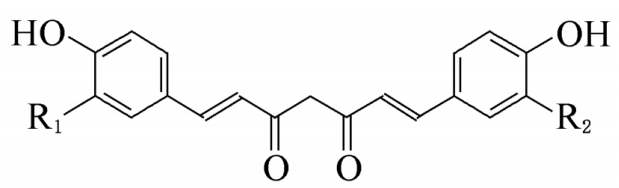 脱甲氧基姜黄素:R1=OCH3 ,R2=H