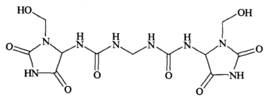 化学名称:N,N-亚甲基一双[N-(3-羟甲基-2,5-二酮-4-咪唑烷基)]脲