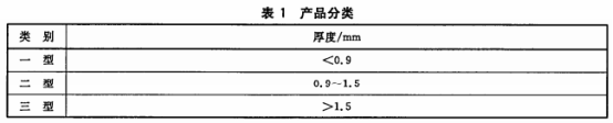 产品分类见表1。