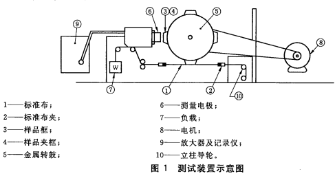在一定的张力条件下,试样与标准布摩擦产生的电压。