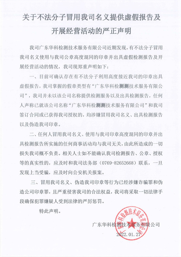 关于不法分子冒用我司名义提供虚假报告及开展经营活动的严正声明